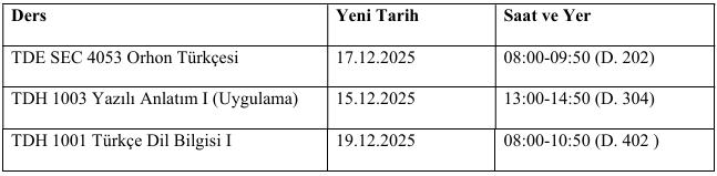 FEF Türk Dili ve Edebiyatı Bölümü Öğrencilerinin Dikkatine!